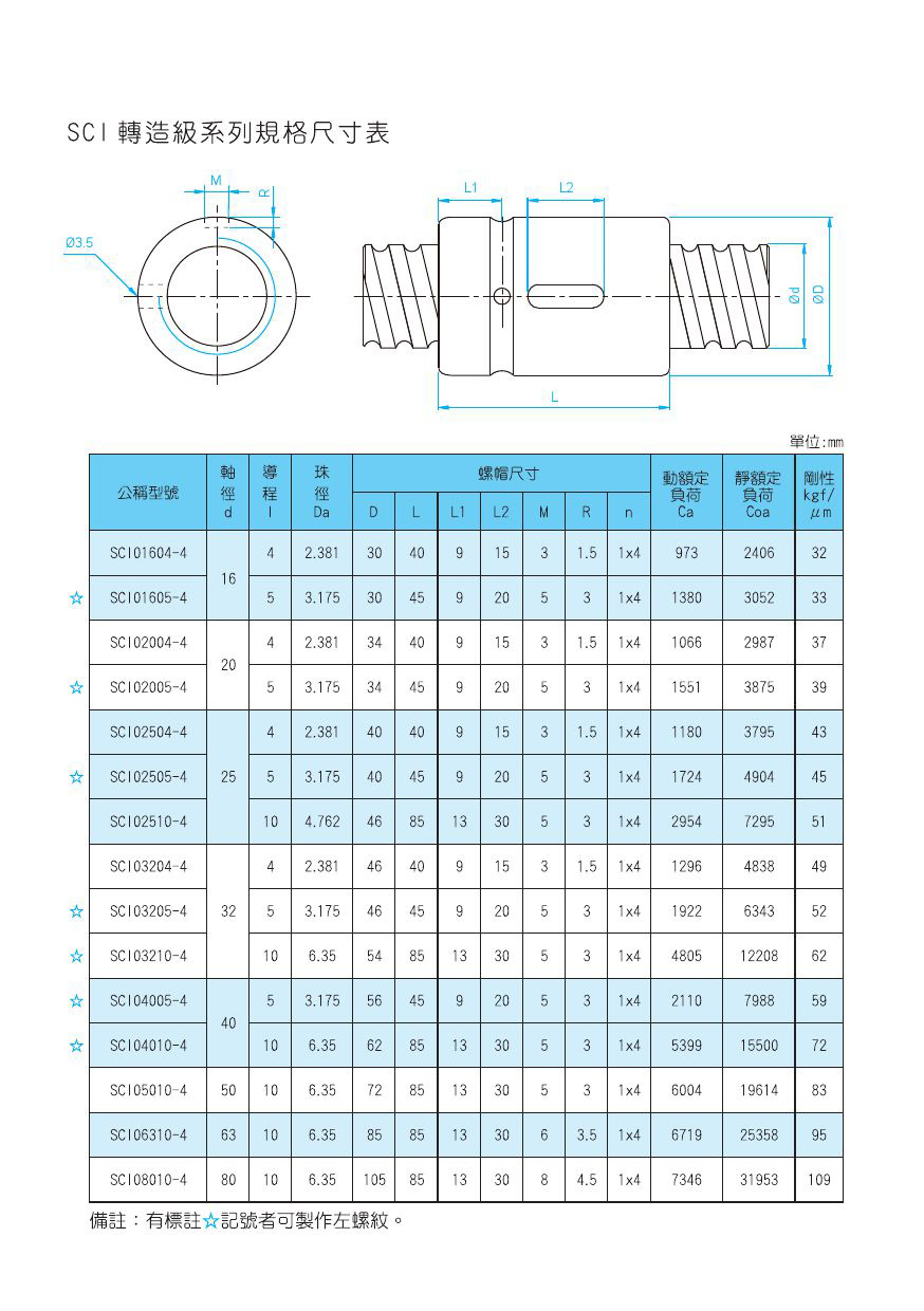 除目录中标准规格之外,我公司接受非标定制;可按轧制丝杠尺寸加工高精度研磨滚珠丝杠。